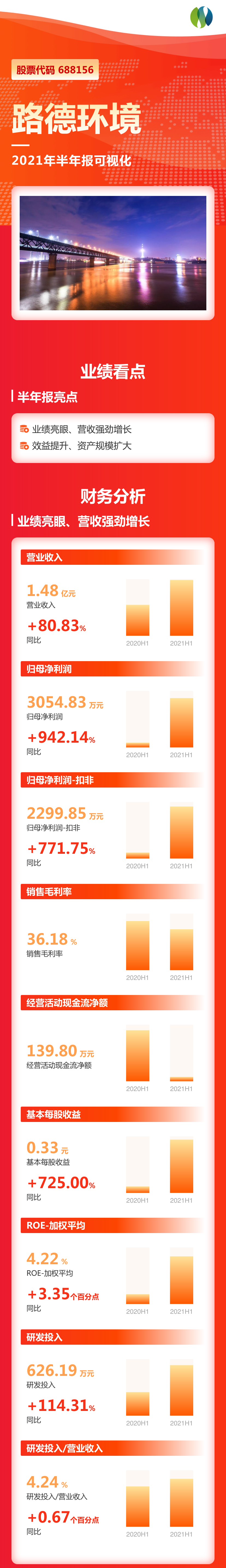 8月19日,路德環(huán)境發(fā)布2021年半年報,上半年,公司實現(xiàn)營業(yè)收入14785.15萬元,同比增長80.83%;歸屬于上市公司股東的凈利潤3054.83萬元,同比增長942.14%。