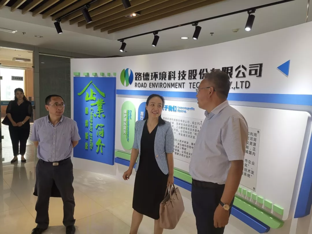 2019年7月22日,東湖高新區(qū)黨工委委員、管委會副主任夏亞民、區(qū)金融辦主任秦軍等一行蒞臨路德環(huán)境調(diào)研,公司董事長季光明、董事會秘書劉菁等領(lǐng)導(dǎo)熱情接待并進(jìn)行了座談。 夏主任一行在季總陪同下,來到公司企業(yè)文化展廳,并在公司核心技術(shù)專利墻前駐足參觀。 ▲夏主任在季總陪同下參觀公司企業(yè)文化展廳 在隨后的座談會上,公司董事長季光明首先對東湖高新區(qū)長期以來對公司的大力支持表示感謝,并向夏主任一行匯報(bào)了公司的發(fā)展歷程、業(yè)務(wù)領(lǐng)域、商業(yè)模式以及上市工作進(jìn)展情況。 ▲董事會秘書劉菁女士向夏主任一行介紹公司情況